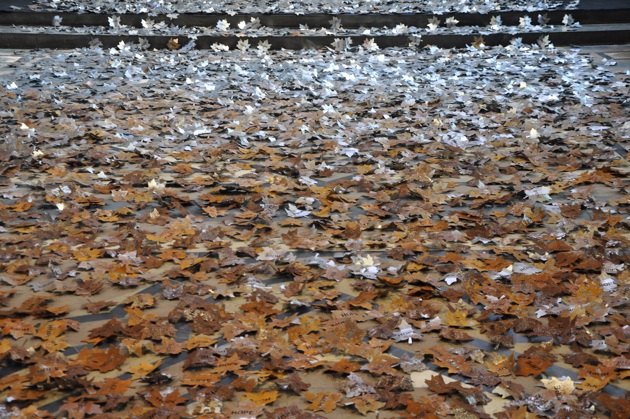 The leaves were laid out on the Cathedral floor, creating a beautiful impression of autumn leaves fallen from the trees. Appearing as though naturally scattered by the wind, the leaves symbolised the past and what has transpired. However, the leaf is also emblematic of the future. The artist chose a sycamore maple leaf as it symbolises strength, protection, eternity and clarity.