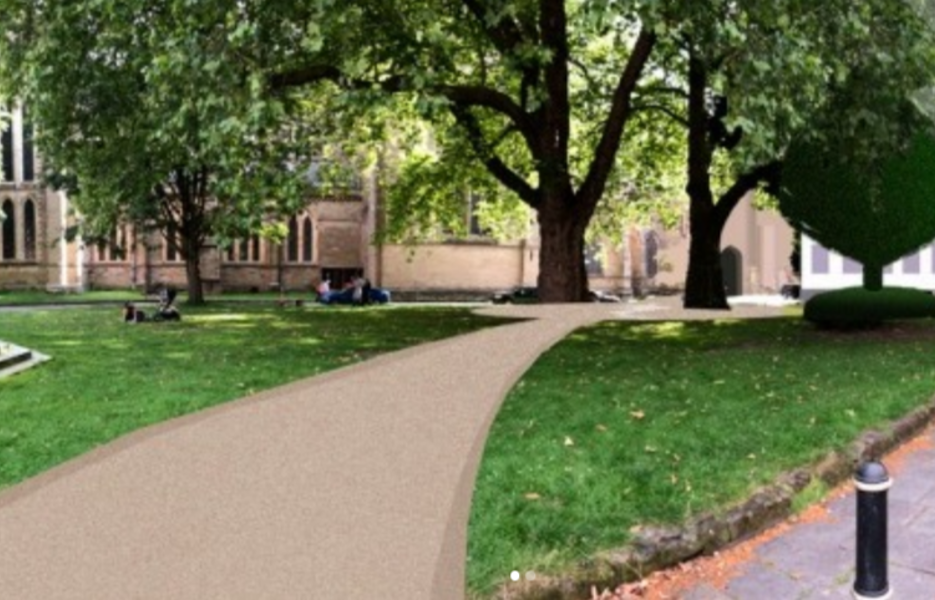 The newly landscaped area includes a central footpath linking the city and Cathedral, enhanced aesthetics with greenery and thoughtful design and a welcoming meeting point for the community.