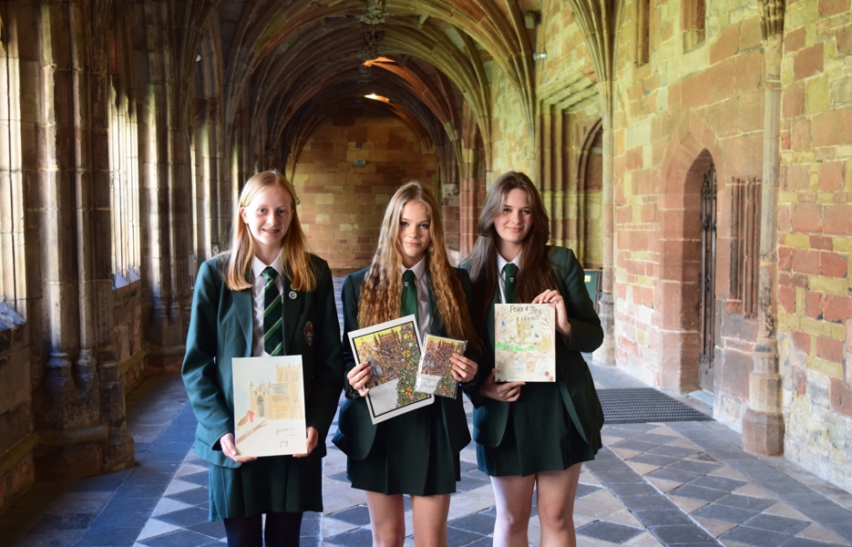 Year 9 student, Isobel Skilbeck, aged 14, was selected as the winner for her charming illustration of Worcester Cathedral blanketed in snow peeking out from behind a beautifully decorated Christmas Tree. The artwork beautifully captures the spirit of the season and the majesty of the historic building. The winning design has now been professionally printed and is available for purchase in the Cathedral shop.