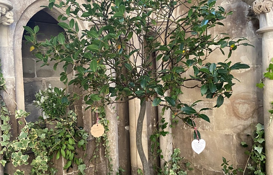 A prayer tree is in place for hope and remembrance, and visitors are invited to write a message on one of the tags provided and add it to the branches.