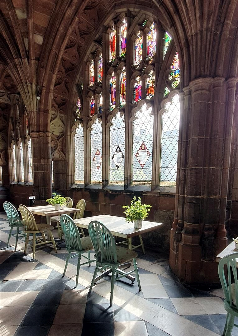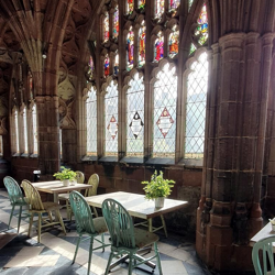 The Cafe is situated in the East Cloister opposite the Garth Garden. To access the Café, enter the Cathedral through the main north door, opposite the High Street, and cross the Nave to enter the Cloister.